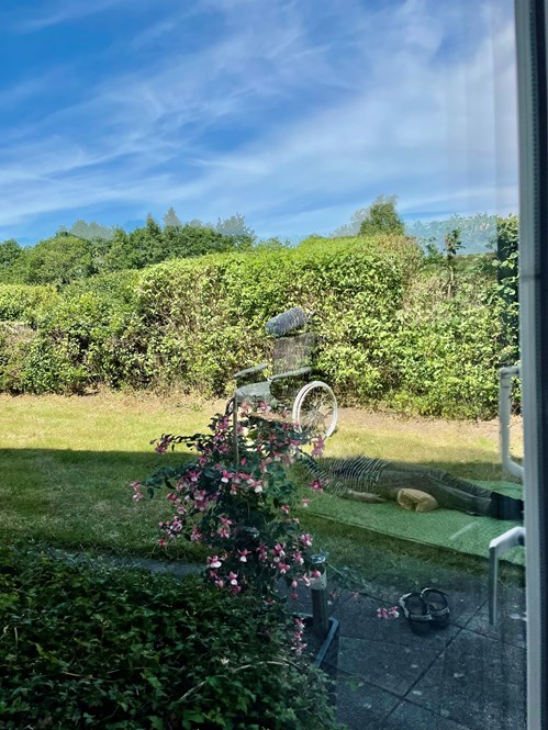 Selvom man sidder i en kørestol og kroppen ikke rigtigt virker mere, og man ikke selv bare kan gå ud i haven, når man har lyst til det - så kan man godt komme til at ligge og solbade på græsplænen igen. “Det kunne jeg så godt lide, men det er mange år siden nu.”