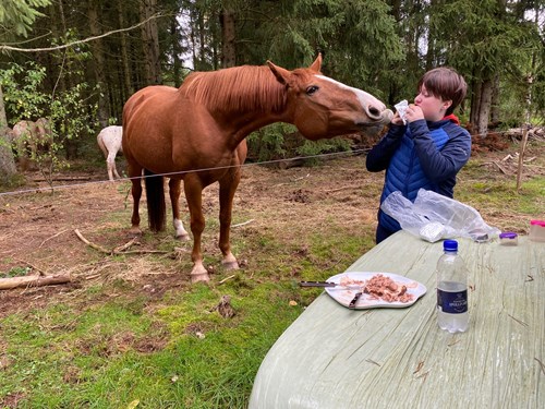 Det er naturligvis ikke muligt at komme med ud til klienter i terapiforløb, og arbejdstiderne er lidt skæve, og jeg må gå lidt til og fra i ft telefonsamtaler og mails MEN under de betingelser kunne det være muligt at komme i praktik og være min hestetræningsassistent.