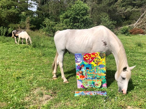 Og se, nu er maleriet færdigt. Knap 50 deltagere har hen over sommeren bidraget med farver og former og følelser omkring hestene i dette kunstværk.