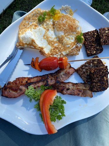 Gitte tilbød os også stimulation af det, jeg nu kalder ”blomme-sansen” – den sans som forbinder det hele, når man står ved et stort og smukt gammelt blommetræ, som er overdådigt fyldt med smagfulde blommer og perfekt sødme imellem skind og frugtkød. Solen skinnede og hjernen koordinerede bevægelsen af arm og hånd til blommen, et forsigtigt greb om den og et lille vrid for at få den til at slippe sit hjem inden den skulle bo i min mund og mave. I fagsprog kaldet ”øje-hånd-mund koordination”.