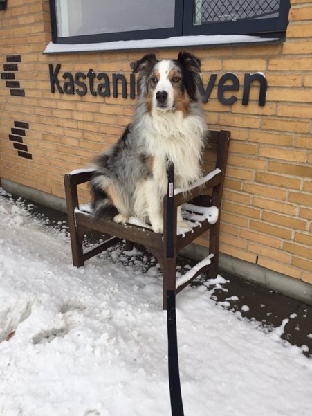 Jeg er ergoterapeut Karina's terapihund, en australsk hyrdehund på 4 år. Jeg har desuden trænet rally, dogdancing og horse-and-dog-agility.